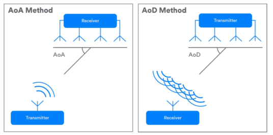 最新蓝牙标准(5.1)允许系统使用天线阵列来确定通信方向(图3)。使用天线阵列的单个设备可以与任何其他蓝牙设备一起确定彼此的相对方向。这是通过测量到达角(AoA)或离开角(AoD),这取决于通信的方向和哪个设备有天线阵列。